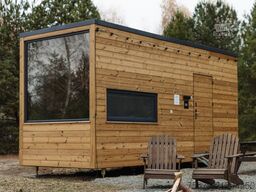 Mobile house made from a timber-metal frame. Fully operational – furnished and equipped with technology. Optional terrace or awning available.